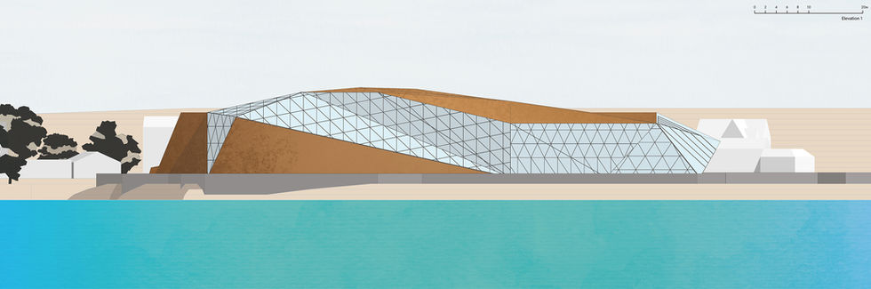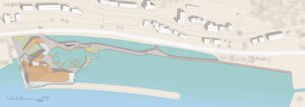 Making an effort not only to produce the building of a unique shape, that, being a dynamic civic space, can become a way of revitalising the previously abandoned harbour with respect to the existing site context and referencing construction methods to the most notable site features, but also redevelop the harbour landscape, broadening the proposal functions and maximizing visitor experience quality.
