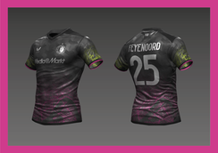 The jersey design is inspired by the Rotterdam's Kijk-Kubus (cubic houses) constructed in 1984. The cubic pattern, based on the architecture of Kijk-Kubus is complemented with the neon-coloured map of the city.