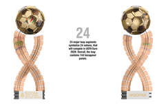 A competition entry for SOCAR's best young player award for UEFA Euro 2020. The trophy design combines a football mounted on an infinity shape, which consists of 24 segments (24 participating nations) and multiple hexagonal panels.